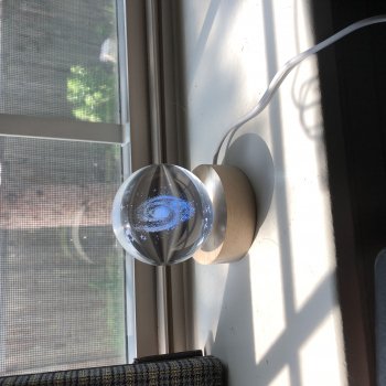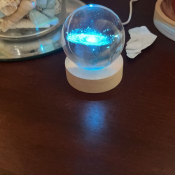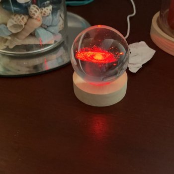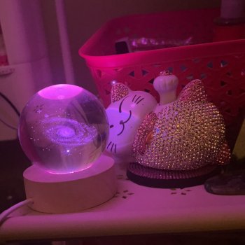 This is so cute😍 I placed it infront of my fortune cat so that it seems like she's enjoying looking at it lol😄 I love how the color changes into different hues. This crystal ball lamp is small but packs a lot of punch in adding oomph factor in your display area.💜