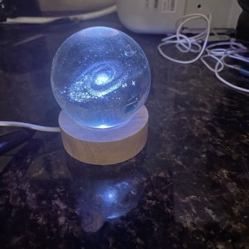 pictures do not do it justice this is a fabulous little ball with the Milky Way in it which projects light onto the ceiling as well I hope the pictures help somewhat I highly recommend this product for anybody with space enthusiast as well as for small children makes a good night light, nice.awesome thanku, beautiful, wonderful, Absolutely stunning!, very cute an love it