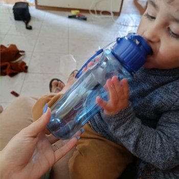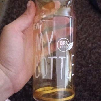 Beautiful bottle. It is hard to open, the child cannot open, I hope it will be normal over time.