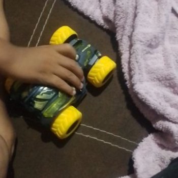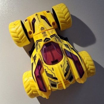 Nice car for the baby. Hitting an obstacle, he makes cool spins