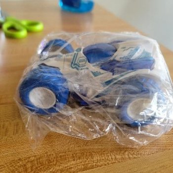 The child likes it. It's a push-away car, but it's fun with the front part moving differently than other cars.. The price ratio is good. The size is about an adult palm. Children like it.